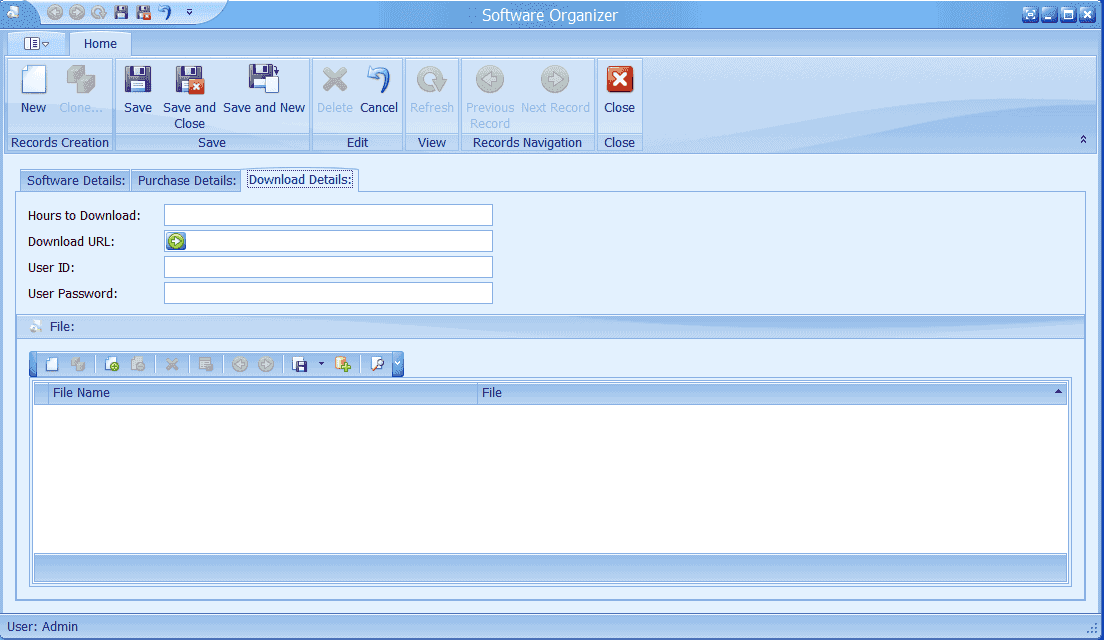 This window is where you enter all your software details. You can track title, type, version number, registration key, guarantee period, software category. Also enter any system requirements or licensing terms.